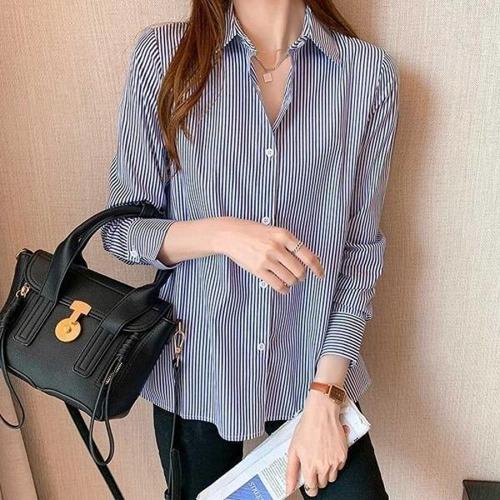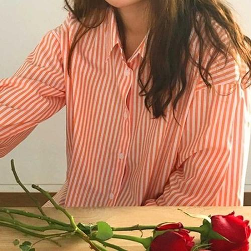 [엄지척]여자 면남방 줄무늬 셔츠 봄가을 간절기 코디_19660304_667501
