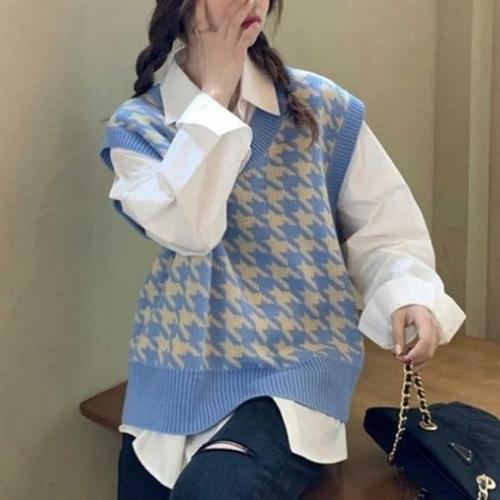 [엄지척]브이넥 코디 하운즈 패턴 여자봄옷조끼 여성베스트 여_19801352_667501