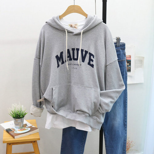 레이츄 / MAUVE 레터링 루즈핏 봄 쭈리 후드 티셔츠
