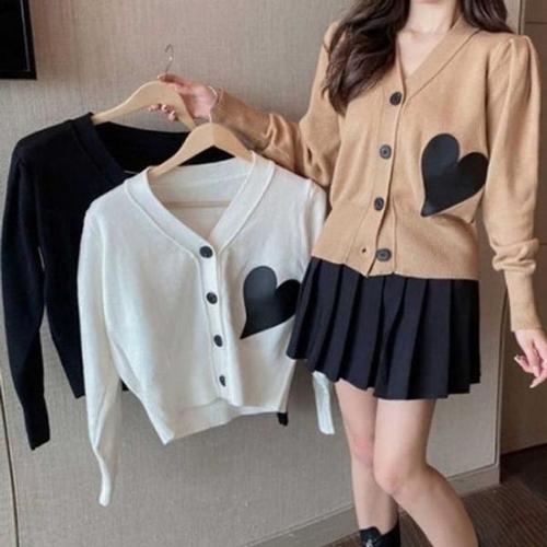 부드럽고 피부 친화적인 울 니트 가디건 루즈핏 숏 브이넥 한국 스타일 아우터웨어 스웨터 재킷 봄 2024 레귤러 슬리브