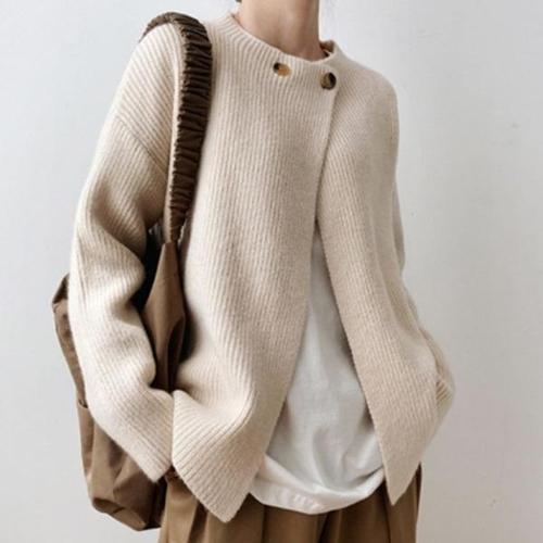 여성용 라운드넥 루즈핏 슬리밍 가디건 스웨터, 봄 가을 니트 가디건, 단색 다용도 탑