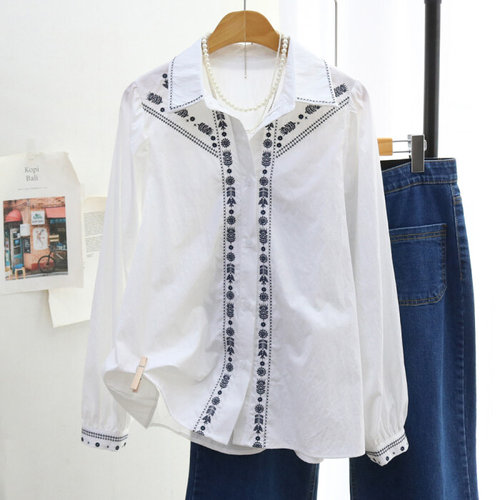 더그랜 여성 루즈핏 봄꽃 자수 긴팔 블라우