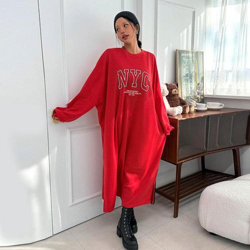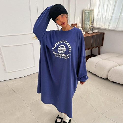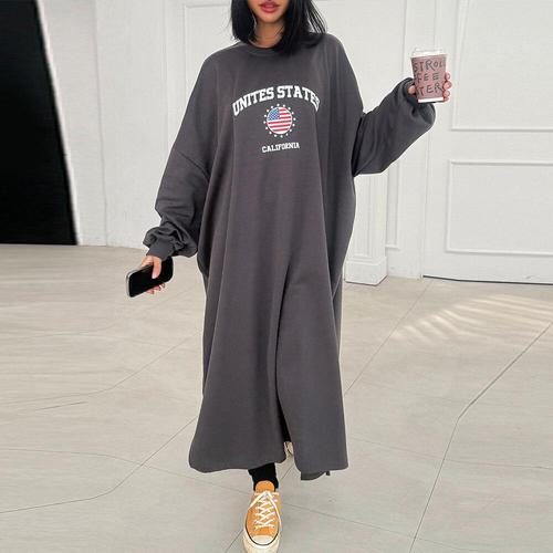 [유야]여성 면 레터링 긴팔 트임 롱 원피스 -FOP0586- 봄 가을