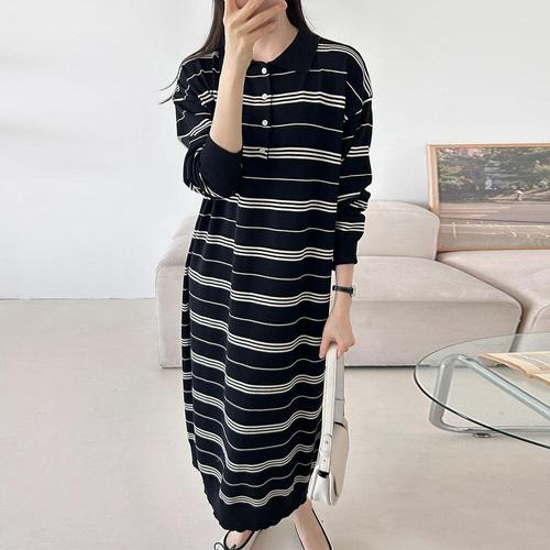 [유야]여성 카라 단가라 니트 롱 원피스 -FOP0580- 봄 가을