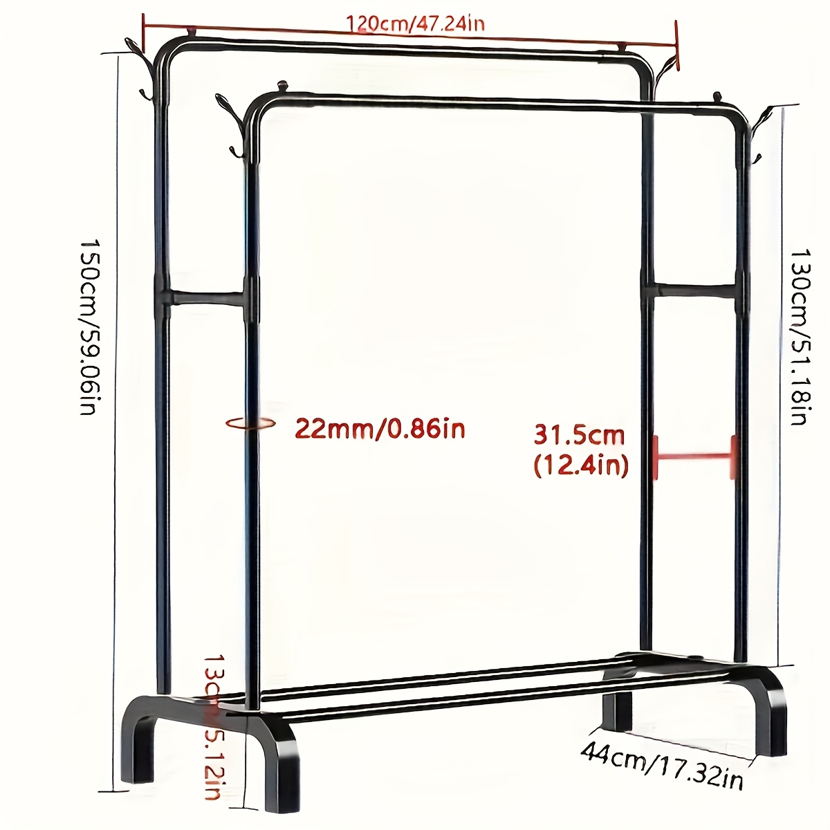 TEMU 1 더블 바 메탈 옷걸이 선반 & 후크 포함 - 휴대용, 다기능 옷장 정리대, 침실, 기숙사용 | 우산 거치대 기능, 홈 필수품, 모자 걸이