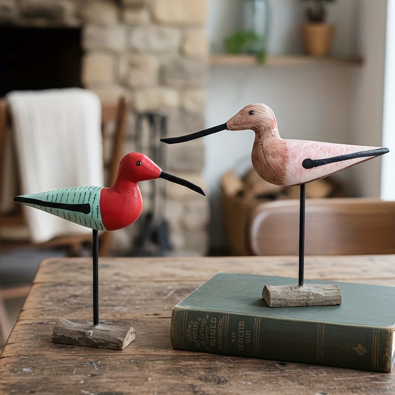 TEMU 2개 세트 북유럽 스타일 목재 페인팅 긴부리 새 동물 장식품, 상점 및 가정 장식용, 새해 및 생일 선물