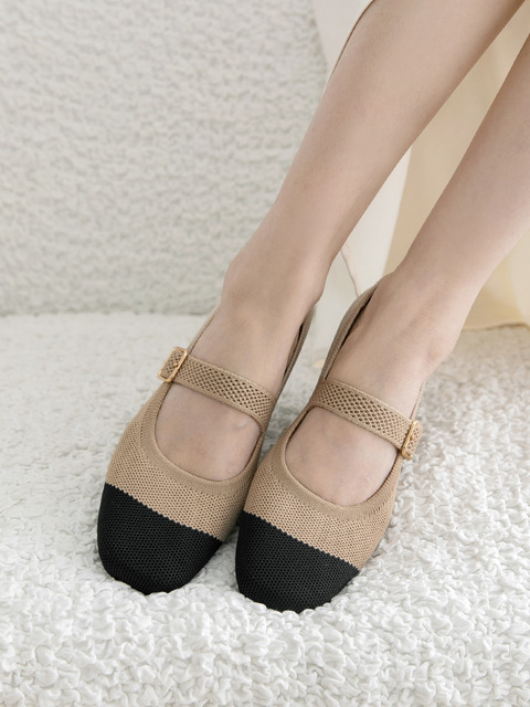 [분홍코끼리] (쫀득몰드창) 카미유 니트 벨크로 메리제인 플랫