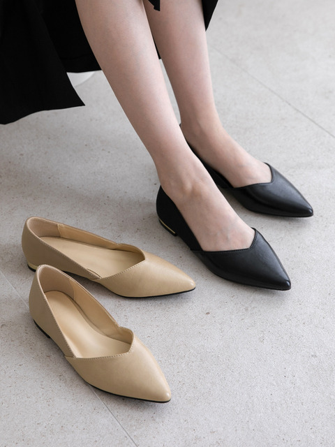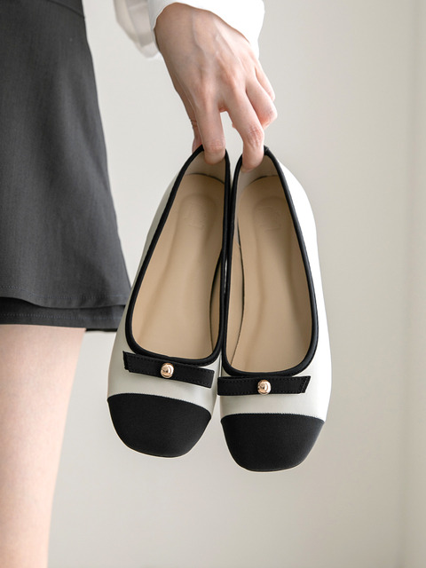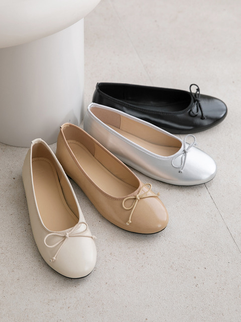 분홍코끼리 쫀득몰드창 아이린 리본 배색 플랫 슈즈 1cm