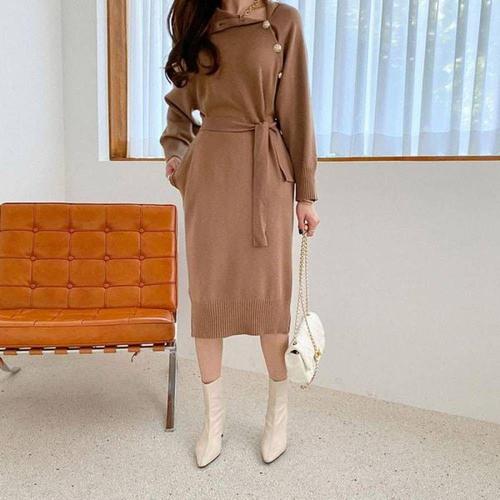 롱니트 여름 여성 뷔스티에 원피스 미니 단추 WFKOIM1