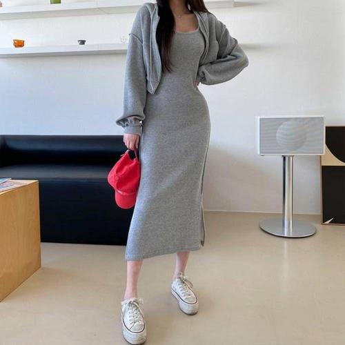 롱 니트 조끼 원피스 가을 겨울 캐주얼 민소매 스웨터 롱원피스