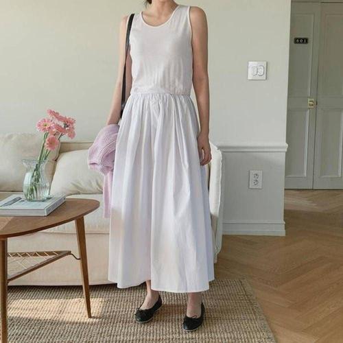 퍼스트클로 여성 뷔스티에 니트 레이어드 나시 끈 롱원피스_GD9981
