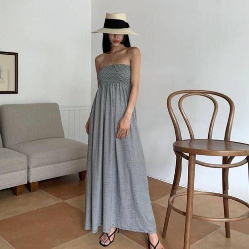 휴양지 여름 원피스 뷔스티에 롱니트 데님 셔츠 WFKOIRE