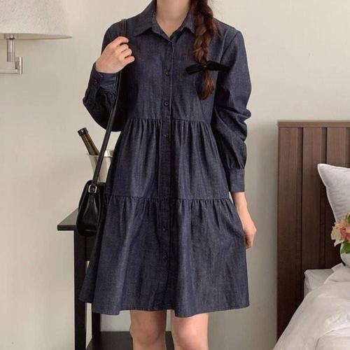 데님 미니 롱니트 트위드 뷔스티에 셔츠 원피스 WFKOIUG