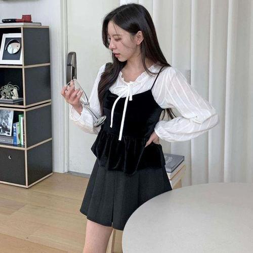 [다잇템]여자 벨루어 포근 클래식 프릴 캐미 뷔스티에