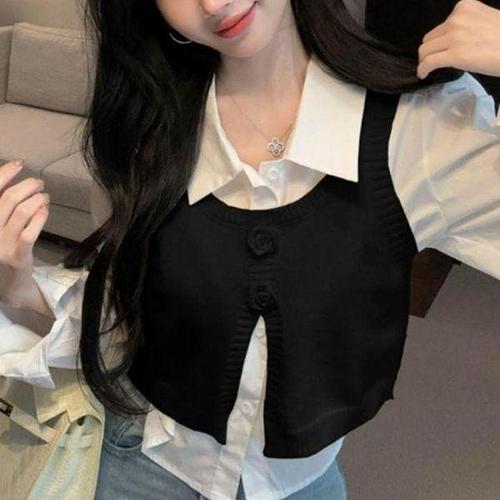 [셀러허브_여성트랜드패션]여성 뷔스티에셔츠 페미닌룩 코디세트 니트 크롭 베스트 조끼셔츠 뷔스티에