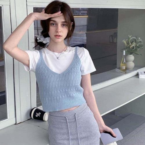 [셀럽하우스]여자 KHCU1478 여름 데일리 레이어드 뷔스티에 니트조끼 베스트