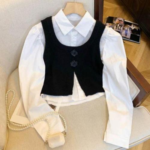 [셀러허브_여성트랜드패션]여성 니트조끼 단정한 셔츠 세트 러블리 뷔스티에 소프트