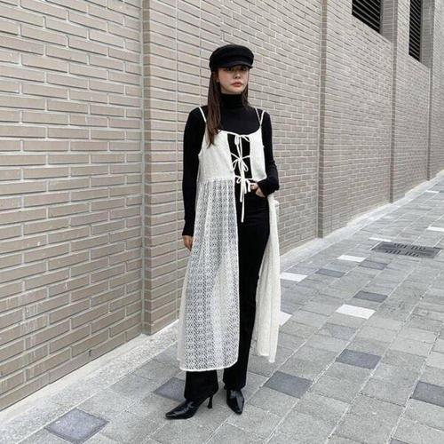 데님 쉬폰 다즈하 롱니트 뷔스티에 나시 온나핏 WFKOIYR