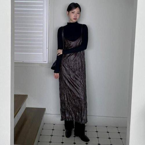 원피스 뷔스티에 끈 셔링 나시 골지 트위드 롱 WFKOITK