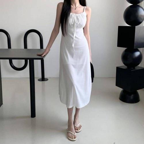 뷔스티에 리본 롱니트 원피스 레이 끈나시 여성 WFKOIIS