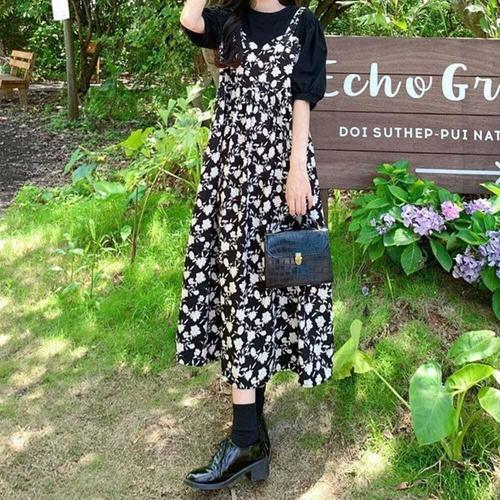 여자 여름 뷔스티에 레이어드 롱원피스 데일리 스타일 WFJ2B12
