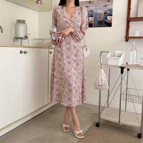 레이츄 / 플라워 쉬폰 뷔스티에 여름 롱 원피스