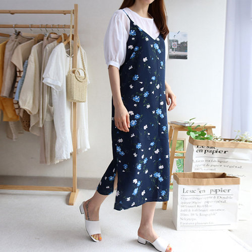 롱니트 뷔스티에 쉬폰 바스락 여름 데님 원피스 WFKOIO2
