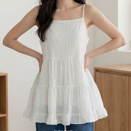 보니제이 / 보니제이 여리여리핏 뷔스티에 탑 셔링 끈나시 도트