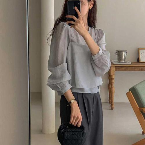 누보마켓 우아한 여성 뷔스티에 레이어드 블라우스 세트 하객룩 격식룩 투피스 상의