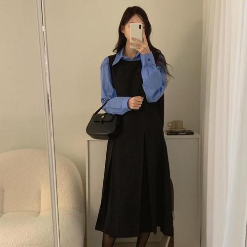 [바이어스]셔츠 블라우스 뷔스티에 주름 플리츠 원피스 세트 룩 (12470448)