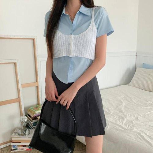 [신상오픈런]브라베 여성 미니멀 금장단추 블라우스 SS 카라