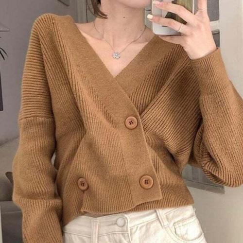[셀럽하우스]브이넥 GIAM0570 브라운 슬림핏 예쁜니트 니트 간절기 랩오프숄