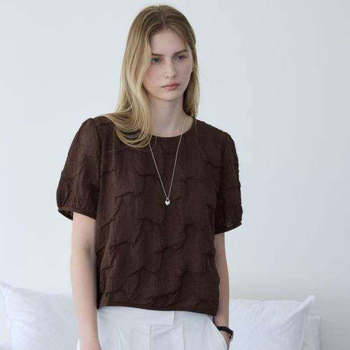 [리안뉴욕]볼륨 자카드 블라우스_딥 브라운