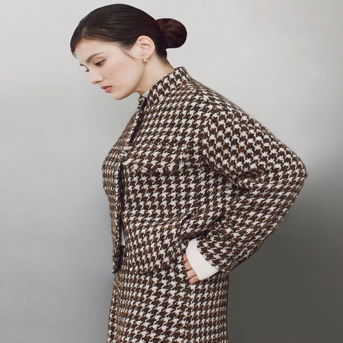 닥스 여성 [클리어런스][SET-UP][울] 브라운 하운드투스 패턴 트위드 자켓 (DLJA4D905W2)