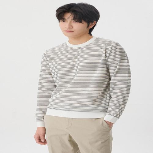 [브렌우드]코오롱 브렌우드 [워셔블] 조직 스트라이프 라운드넥 스웨터 BRWAS26351WIX