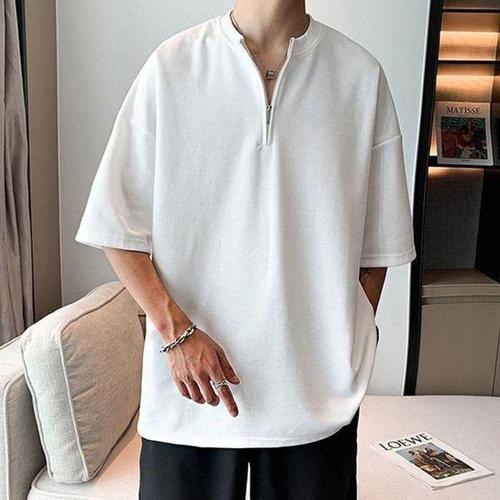 [셀러허브_여성트랜드패션]티셔츠 단추 남자 브이넥반팔티 신축성 남성브이넥반팟 무지반팔티