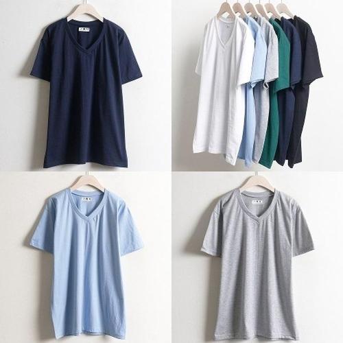 [셀러허브_여성트랜드패션]브이넥 브이넥반팔티 외출 남자반팔티셔츠 옆라인 라운드반팔티 남자반팔