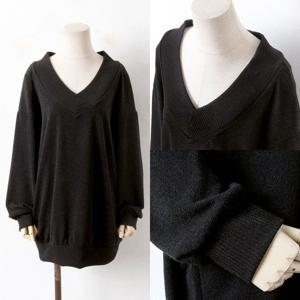 [아이우먼]빅사이즈 데일리 브이넥 니트 티 셔츠 WW3125 루즈 핏 가을옷