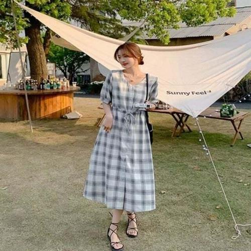 [셀럽하우스]브이넥 YOAB2458 인기 여성 반팔 셔츠 감성 롱원피스 1P 여름