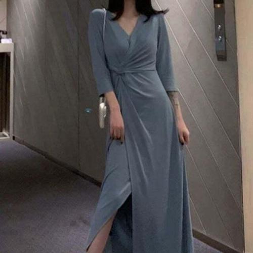 [셀럽하우스]데이트룩 VYEF5213 브이넥 꼬임 모던 여자롱원피스 원피스 직장