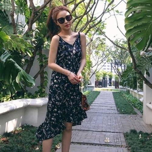 [엄지척]플라워 나시 원피스 V넥 슬림 여름 롱 미디 스커트_19910294_667501