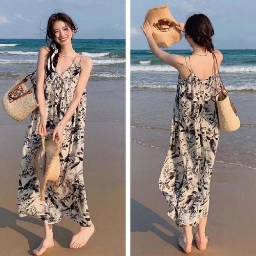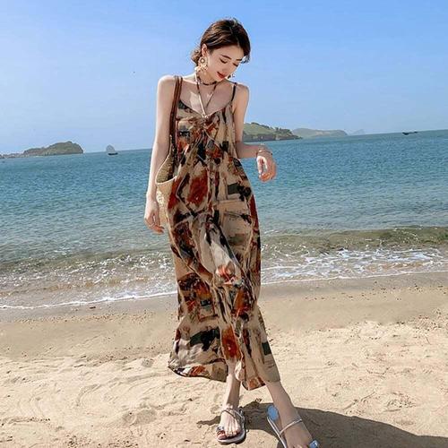 [셀럽하우스]끈나시 NZEH6306 여성 캐주얼 롱 원피스 필수템 브이넥 여름 휴