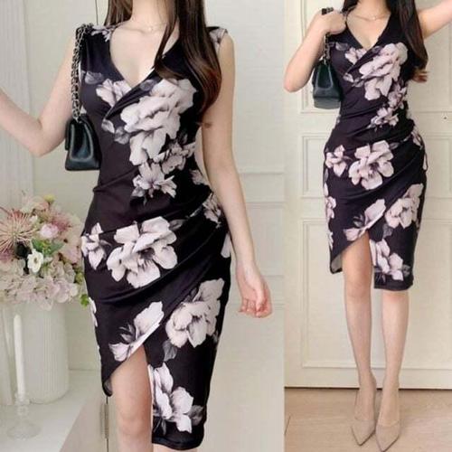 [셀럽하우스]롱 LKVY3053 나시 캐주얼 원피스 여자 필수템 꽃무늬 브이넥 셔