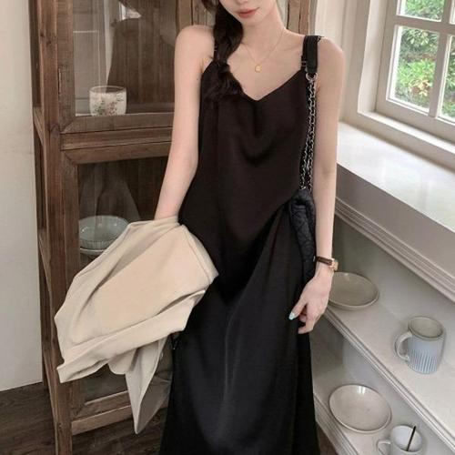 [엄지척]여자 새틴 브이넥 끈나시 A라인 롱기장 원피스_19912053_667501