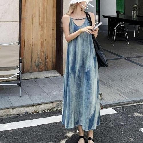 데일로엔 여성 링클프리 플리츠 끈 나시 롱 원피스
