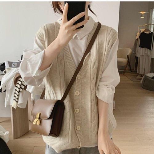 [셀럽하우스]니트베스트 DHSZ3886 꽈배기 브이넥 여성 베이직 코디 니트