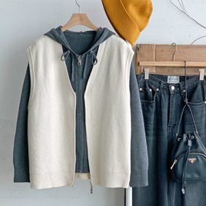 샵앤) 여성 V넥 투웨이 집업 잔골지 심플 니트 조끼 DGB-WVS-4934-아이보리