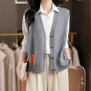 [유니제이] 레머 브이넥 자수 니트 조끼