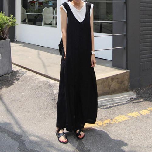 [옷자락]여성용 와이드핏 딥V 점프수트 뒷지퍼 캐주얼
