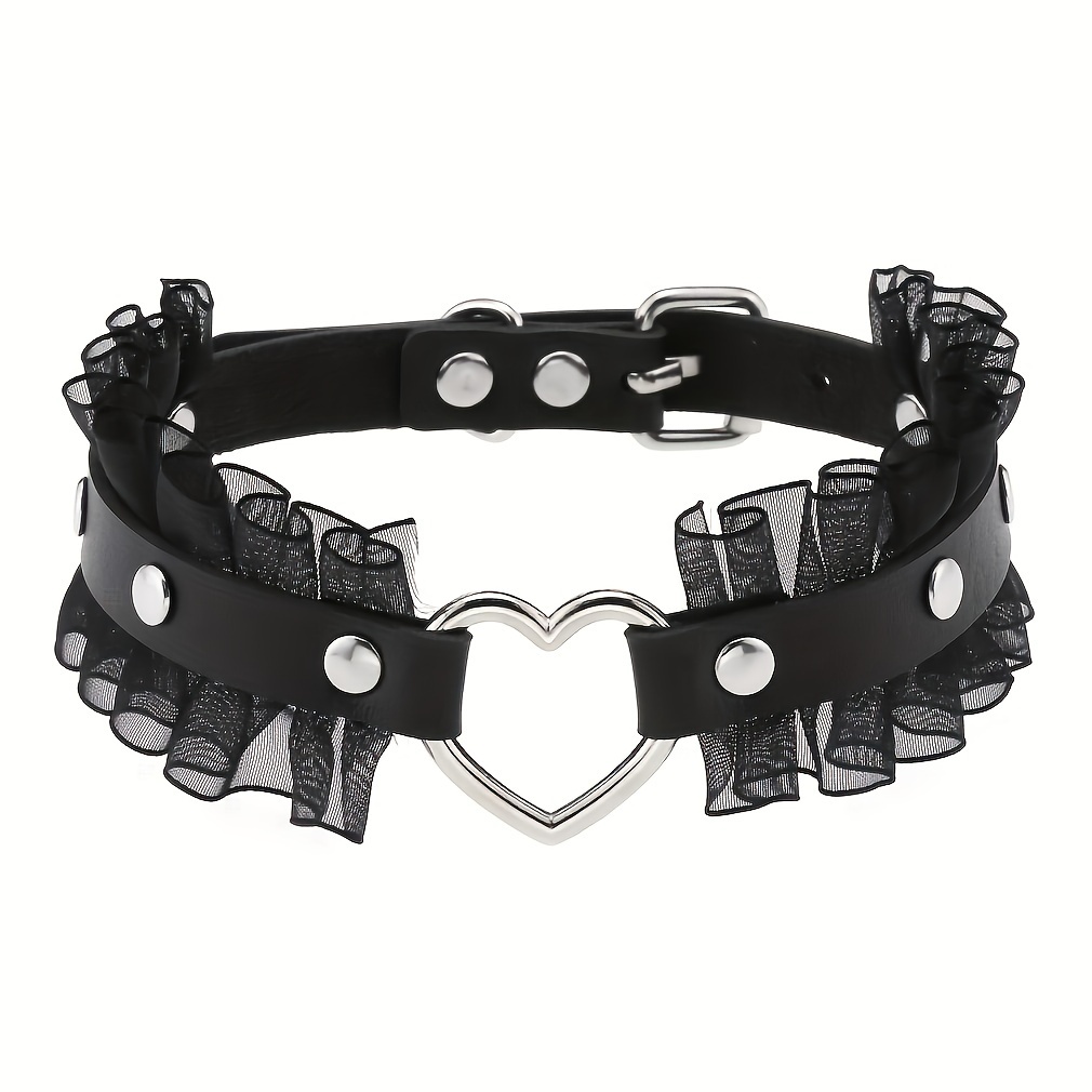 TEMU 1개 여성용 PU 가죽 하트 모양 레이스 초커 칼라, Y2K 패션 부드러운 목 밴드 목걸이, 쇄골 체인, 버클로 조절 가능